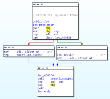 We transform application code such that it jumps around in a ROP-like way, scrambling the program’s control flow graph into disparate units. However, unlike ROP, where attackers are limited by the gadgets they can find and their ability to predict their location at runtime, we precisely control the placement of gadgets during compilation. For example, we can store gadgets in the bogus programs inserted during the opaque predicate obfuscation. After applying this technique, reverse engineers will immediately notice that the handy graph is gone from tools like IDA. Further, this transformation will make it impossible to use state-of-the-art static analysis tools, like BAP, and impedes dynamic analysis techniques that rely on concrete execution with a debugger. Code diffusion destroys the semantic value of breakpoints, because a single code snippet may be re-used by many different functions and not used by other instances of the same function.