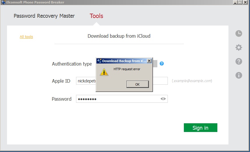Testing this with Elcomsoft’s iCloud forensics tool shows that 2FA is preventing the tool from logging in successfully even with a valid password.