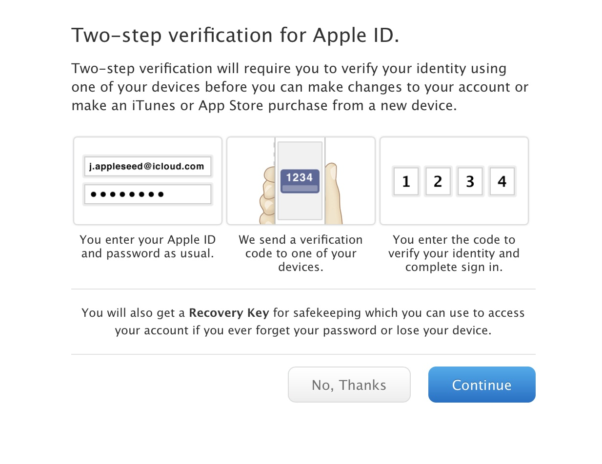 Congratulations! You’ve now enabled Two-Factor Authentication on your Apple ID account. Logout and log back in to try it out.