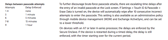 For more information about the Secure Enclave and Passcodes, see pages 7 and 12 of the iOS Security Guide.