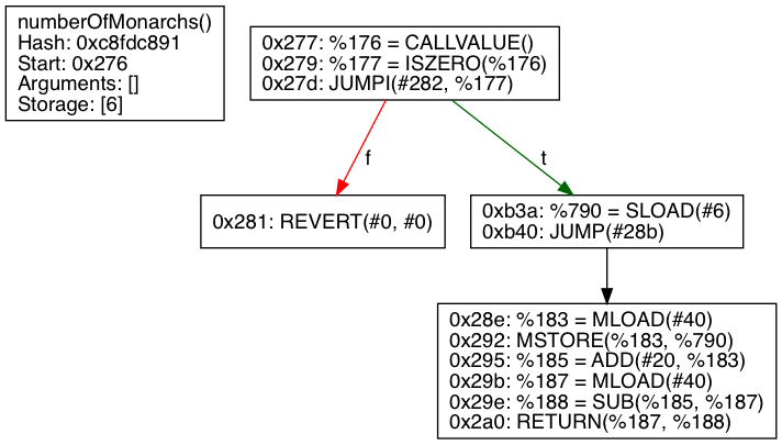 Now, analyze the contract with Rattle and observe the output for the same function. We run Rattle with optimizations, so constants are folded and unneeded blocks are removed.