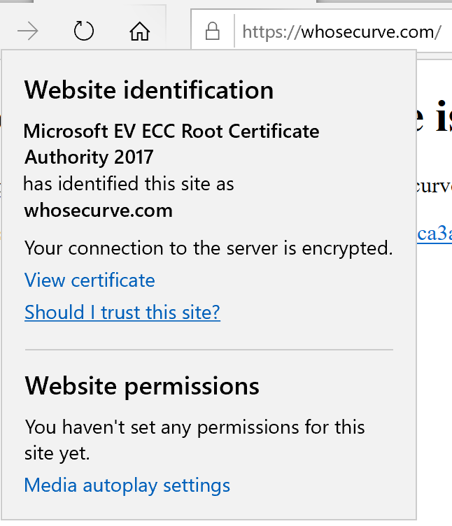 In real life, the parameter validation bypass is also slightly more involved. Microsoft does check that the parameters used in most certificates are valid, but when it is presented a root certificate it has cached, it will skip parameter validation if the certificate uses elliptic curve cryptography and the public key matches what’s cached. This means that for common root CAs, which most users will have seen, our attack is viable. In practice, this means we can generate valid TLS certificates for almost any website, bypass code signing restrictions, or forge signatures for files and emails. For explanatory purposes, let’s look at how we might man-in-the-middle https traffic to some website.