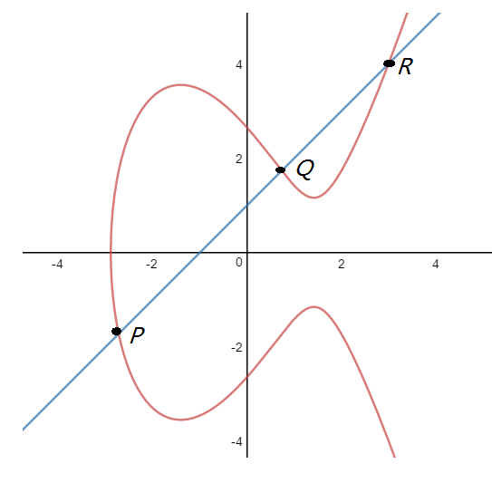 Fig 1. The diagram you’ve seen a million times showing elliptic curve addition