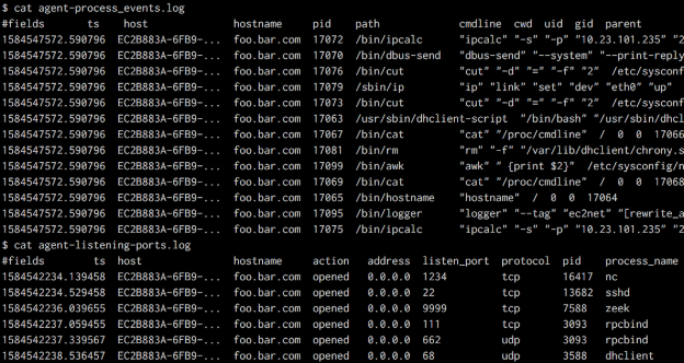 The Zeek Agent closes this gap by adding an endpoint-level vantage point to host activity. Just like Zeek itself, the policy-neutral agent does not perform any detection. Instead, it collects a stream of host-side events (“new process,” “socket opened,” “user logged in”) and feeds those events into Zeek’s standard processing pipeline, where they become available to Zeek scripts just like traditional network-derived events. By representing both network and host activity inside the same event abstraction, this setup lets users deploy all of Zeek’s powerful machinery to cross-correlate the two vantage points. For example, Zeek could now tag network connections with the endpoint-side services that initiated them (e.g., sshd). The agent can also let Zeek create new logs that record endpoint information, as seen in this example: