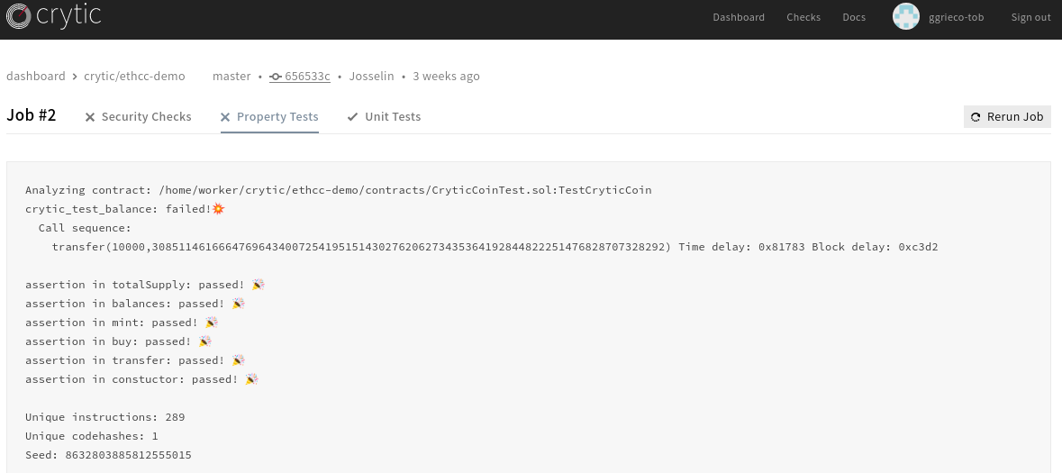And we’re not taking a break! In fact, we have a pipeline of improvements and new features coming to Echidna in the near future, including enhanced coverage feedback, array generation and corpus mutations, and Slither integration. We are also excited to share that we have added Echidna support to crytic.io, our continuous assurance platform for smart contracts.