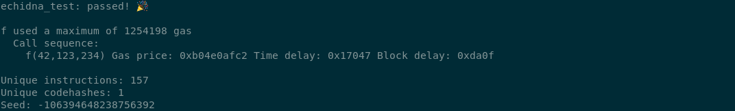 Support for several compilation frameworks using crytic-compile: Integration with crytic-compile allowed Echidna to test complex Truffle projects, and even smart contracts in other languages, such as Vyper, right out of the box. It is completely transparent for the user (if you are an Echidna user, you are already using it!) and it was one of the most important features we implemented in Echidna last year.