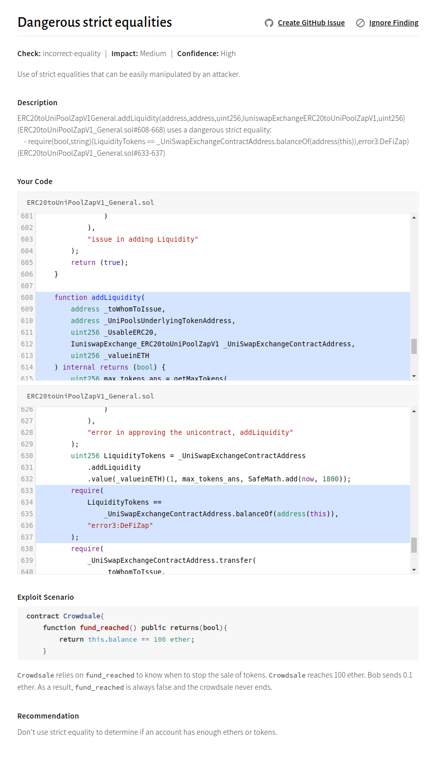 - Dangerous strict equality allows the contract to be trapped