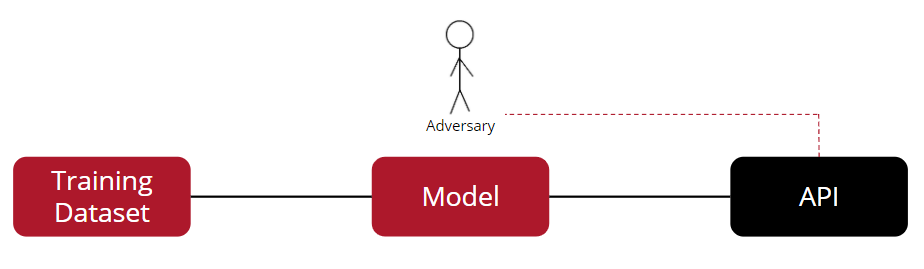 Optimized for usability, efficiency, and flexibility, PrivacyRaven allows users to simulate privacy attacks. Presently, the attacks provided by PrivacyRaven operate under the most restrictive threat model, i.e., they produce worst-case scenario analyses. (This may change as PrivacyRaven develops.) The modeled adversary only receives labels from an API that queries the deep learning model, so the adversary directly interacts only with the API, not the model: