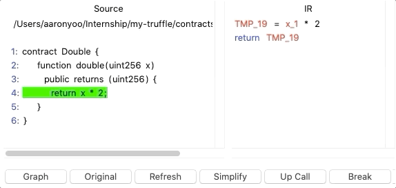 As an intern at Trail of Bits, I worked on Solar, a proof-of-concept static analysis framework. Solar is unique because it enables context-free interactive analysis of Solidity smart contracts. A user can direct Solar to explore program paths (e.g., to expand function calls or follow if statements) and assign constraints or values to variables, all without reference to a concrete execution. As a complement to Solar, I created an integrated development environment (IDE)-like tool that illustrates the types of interactivity and analysis that Solar can provide.