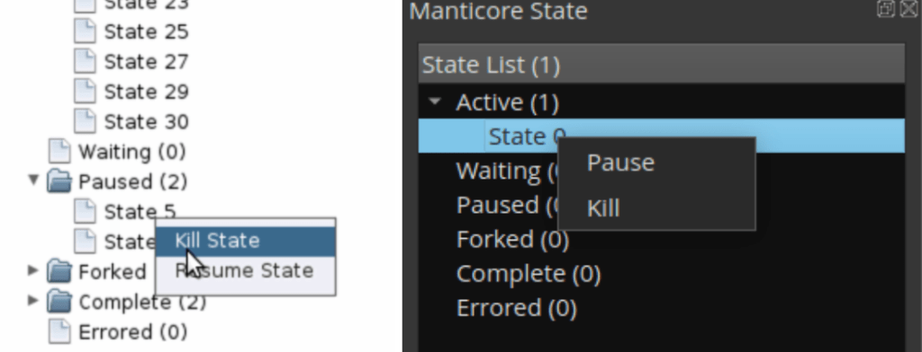 The “hypothetical” state management feature discussed in the demo has actually been implemented and is now part of MUI! If you’re interested in seeing all of the changes and commits, check out the pull requests for the server and the Ghidra plugin. ( These pull requests were made before a refactor of where this code lives. The code now lives in the main Manticore repository under the server directory.)