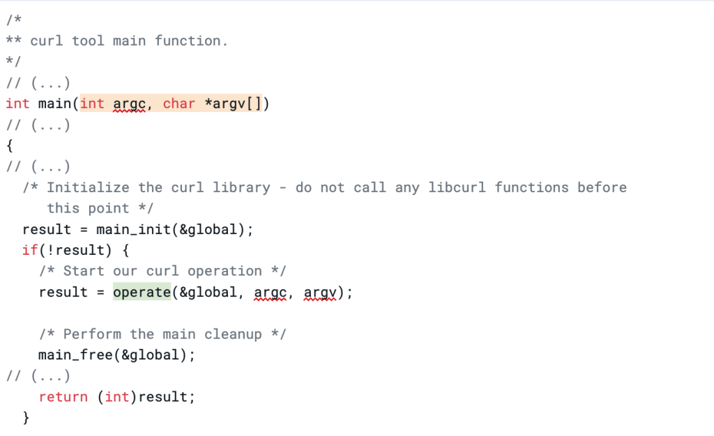 Figure 1.1: cURL’s main() function (curl/src/tool_main.c#236–288)