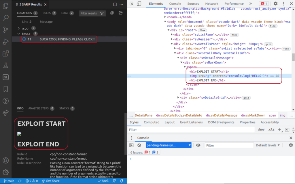 Vulnerability 1: HTML/JavaScript injection in Microsoft’s SARIF viewer