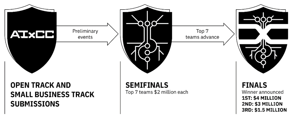 - Registration (January–April 2024): Open and Small Business registration tracks are open for registration. After submitting their concept white papers, up to seven small businesses will be selected for a $1 million prize to fund their participation in AIxCC.
