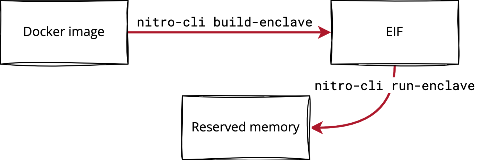 But there’s nothing stopping you from running nitro-cli outside of an EC2 instance, or even from running it in an offline environment. After all, the EIF is just a bunch of headers and binary blobs—the Nitro Hypervisor is not required to build and sign the image. The AWS repository even has an example of building an EIF in a Docker container. Moreover, there is pending PR in the aws-nitro-enclaves-cli repository that will enable EIFs to be signed with KMS once merged.