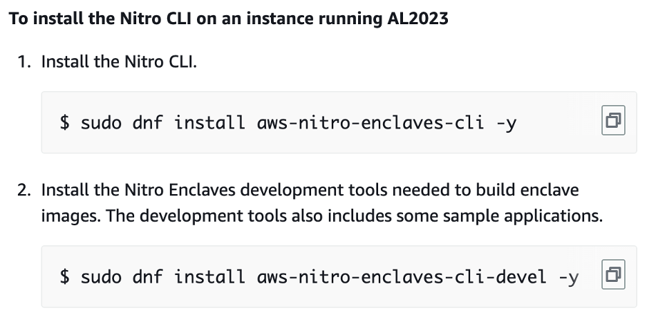Figure 3: Part of the Nitro Enclaves CLI installation documentation