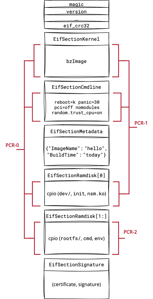 - Can an EIF have more than a single kernel or cmdline section? Probably not, but it’s hard to ensure that something is not possible.