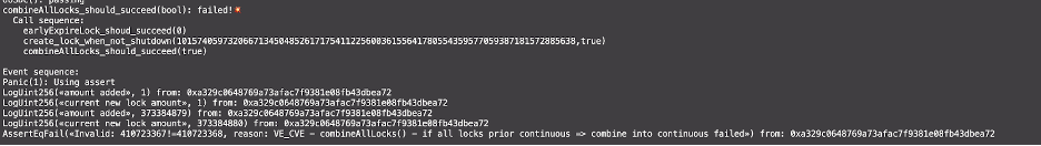 We analyzed the full reproducer traces in Echidna (an Echidna feature that was added during this engagement, as mentioned in the previous section), and we tested assumptions on different senders. We crafted and executed a series of unit tests, each iteration shedding more light on the underlying mechanics. It was time to zoom out to identify the commonalities in the functions involved in the new assertion failures, leading us to focus on the processExpiredLock function. By closely scrutinizing this function, we discovered an important assertion was missing: ensuring the number of user locks stays the same after a call to the function with the “relock” option.