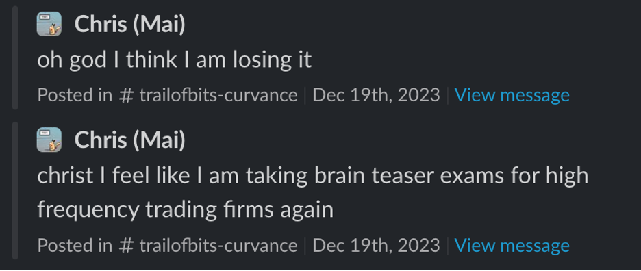 Over the nine-week engagement, we wrote and tested 216 invariants, which helped us uncover 13 critical findings. We also found opportunities to significantly enhance our tools, including advanced trace printing and corpus preservation. This project was a journey of navigating learning curves and accomplishing technological feats, and this post will highlight our collaborative efforts and the essential role of teamwork in helping us meet the challenge. And yes, we’ll also touch on the brain-cell-testing moments we experienced throughout this project!