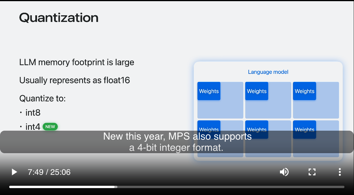 Another clip from one of the WWDC videos really stuck with us. In it, it is implied that macOS Sequoia delivers large ML performance gains over macOS Sonoma. However, the comparison is really a full-weight float16 model versus a quantized model, and the performance gains are due to quantization.