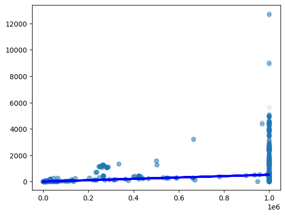 The Python script in figure 6 performs a linear regression through the data. Then, we determine which test cases are more than 1,000ms off from the regression and store them in the inspect variable. The results appear in figure 7.