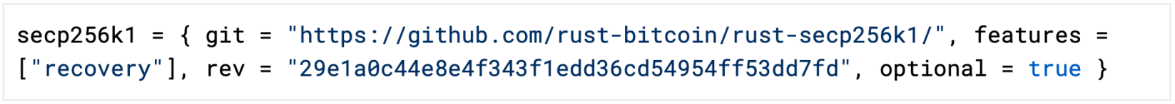 cargo-fuzzbecause it enables a special fuzzing mode automatically that breaks secp256k1’s functionality. We applied the following dependency declaration infuel-crypto/Cargo.toml:20: