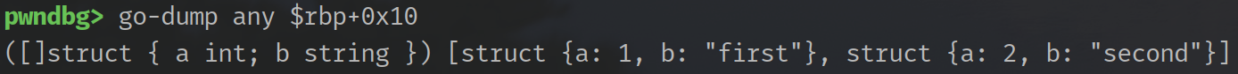 The go-dump command is also capable of parsing and dumping arbitrarily nested types so that every type can be dumped with just one command.