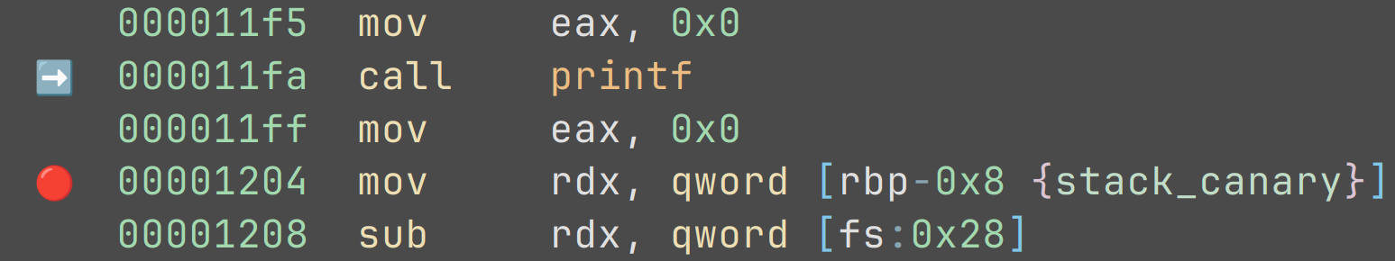 Figure 3: Binary Ninja displaying icons for the current PC and breakpoints